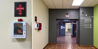 Where to find Naloxone kits on campus: