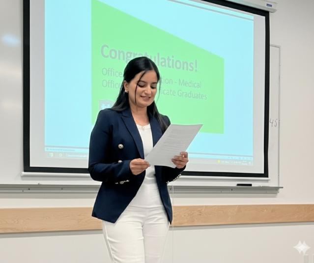 Nidah found her way forward by enrolling in the customized Medical Office Skills Certificate Training program at Vancouver Community College. The program was delivered in partnership with Sources Community Services Society and the Partnership Development Office, with funding from the Ministry of Post Secondary Education and Future Skills. The 22-week program combined classroom learning with hands-on experience. Nidah explains that it gave her “a strong foundation in medical terminology, office procedures, and electronic records, and I especially valued learning practical skills like communication, scheduling, and handling confidential information.”