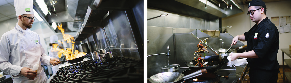 Learn top culinary skills through a proven system of demonstration, hands-on practice, and group discussion. Daily work in on-campus food outlets offers a range of professional experience from casual to fine dining.